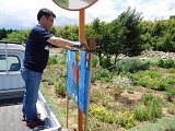 地域の方が作ってくださったウェルカムプレートと花鉢。