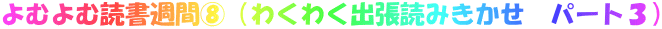 「わくわく出張読み聞かせ パート3」です。子どもたちは,「どんなおはなしを読んでくれるのかな?」と目を輝かせながら待ってくれていました♪すてきな本と出会えましたか?