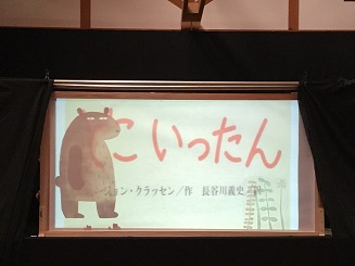 | 今年度最後のおはなし会。 今回は,プロジェクターと人形を使ってのおはなし会です。 |
