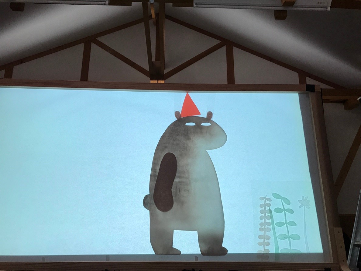 | さあ,楽しみに待っていたおはなし会のスタートです! 今回は,全校児童が大好きなあのおはなしの影絵バージョンですよ♪ |